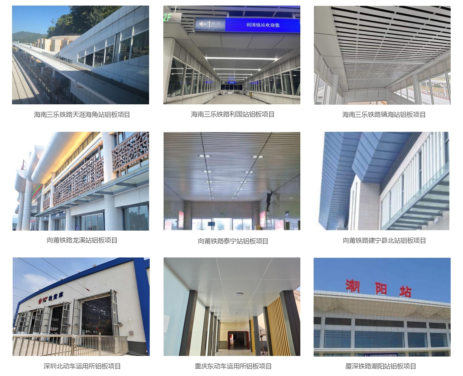 云尚铝板是武汉同信钢结构工程有限公司自有品牌,2013年以来在市场上得到了广泛的应用,典型的工程案例有:深圳北动车运用所,重庆东动车运用所,向莆铁路的龙溪站、泰宁站、建宁县北站,广清城际的清城站、龙塘镇站、白云湖站、江高站,武黄城际的鄂州站、花湖站、黄冈西站,厦深铁路的普宁站、潮阳站,福厦铁路泉州东站,海南三乐铁路的南山站、天涯海角站、镇海站、利国站等一大批有影响的铝板项目,获得了良好的信誉。